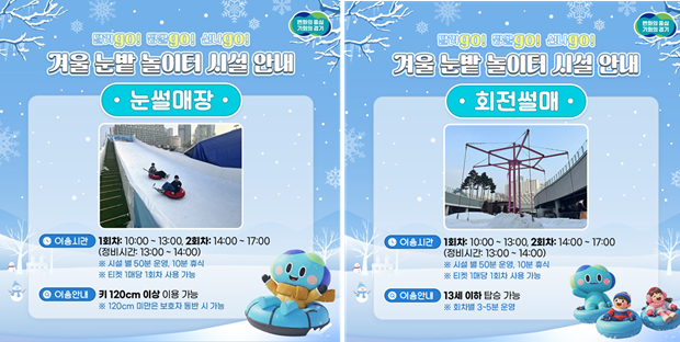 °æ±âµµ´ã¶ã¿¡ ¹®À» ¿¬ ³îÀÌ ½Ã¼³Àº ´«½ä¸Å, ¾óÀ½ ½ä¸Å, ȸÀü ½ä¸Å¸¦ ºñ·ÔÇØ ÄøµÀå°ú ¿¡¾î¹Ù¿î½º, ¹Ì´Ï ¹ÙÀÌÅ· µî üÇè °ø°£À¸·Î ±¸¼ºµÈ´Ù. ¾ÈÀüÀ» À§ÇØ Å° 120cm ¹Ì¸¸ ¾Æµ¿ÀÇ °æ¿ì º¸È£ÀÚ¸¦ µ¿¹ÝÇØ¾ß¸¸ ´«½ä¸ÅÀåÀ» ÀÌ¿ëÇÒ ¼ö ÀÖ°í, ȸÀü ½ä¸Å¿Í ¹Ì´Ï ¹ÙÀÌÅ·Àº 13¼¼ ÀÌÇϸ¸ ž½Â °¡´ÉÇÏ´Ù.